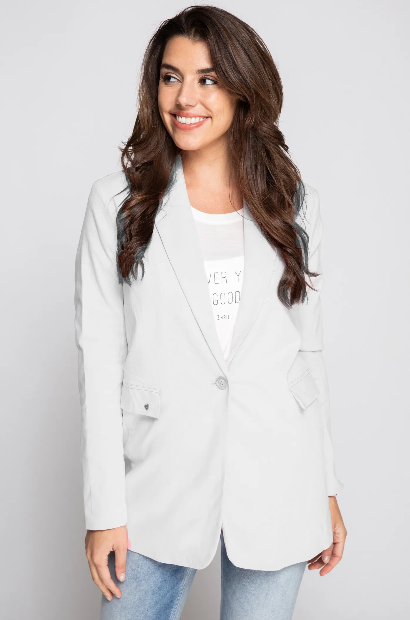 - Details: Reverskragen – Ziertaschen auf der Vorderseite – Ein-Knopf-Verschluss