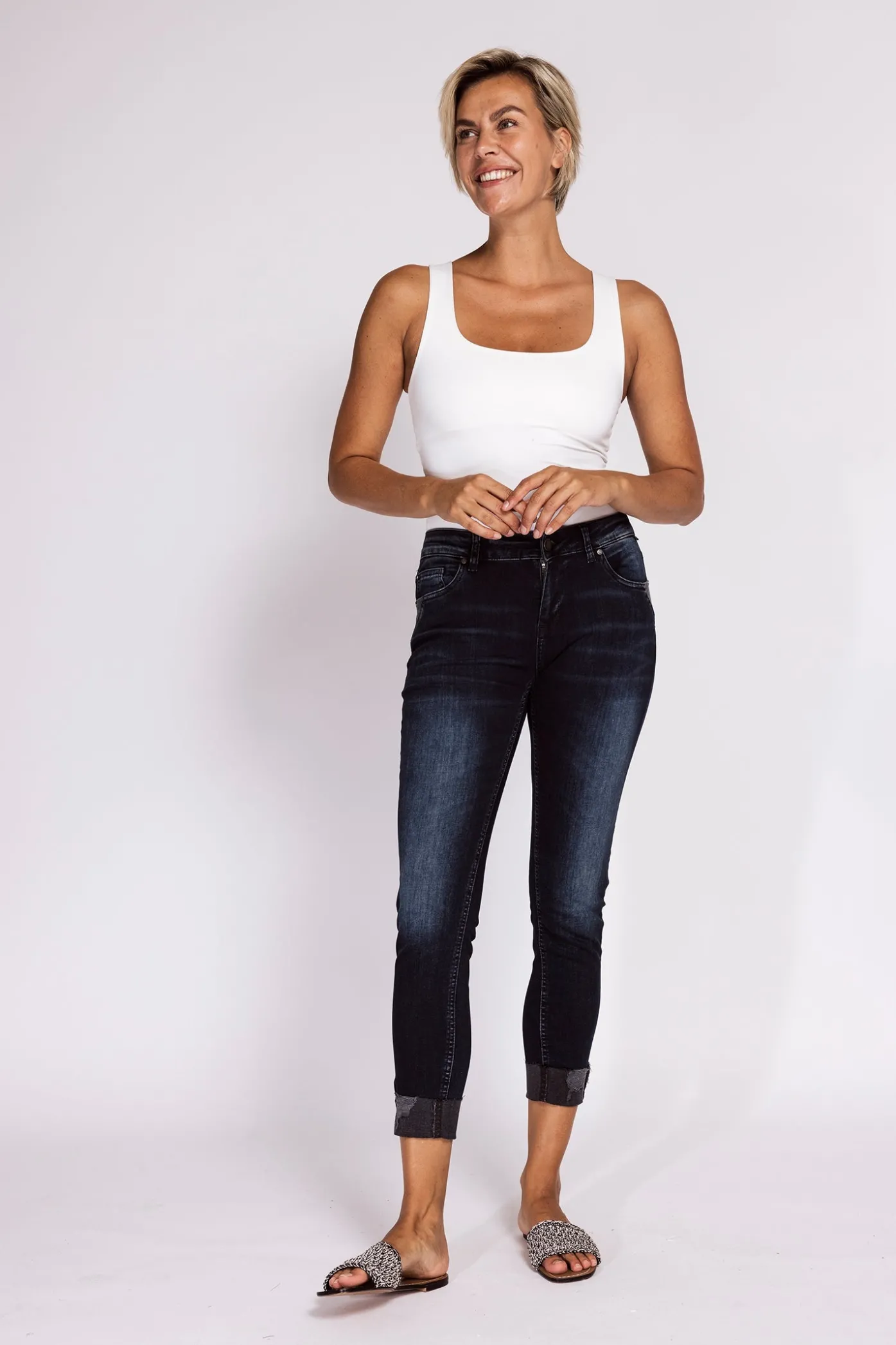 Das Model ist 178cm groß und trägt Größe 27