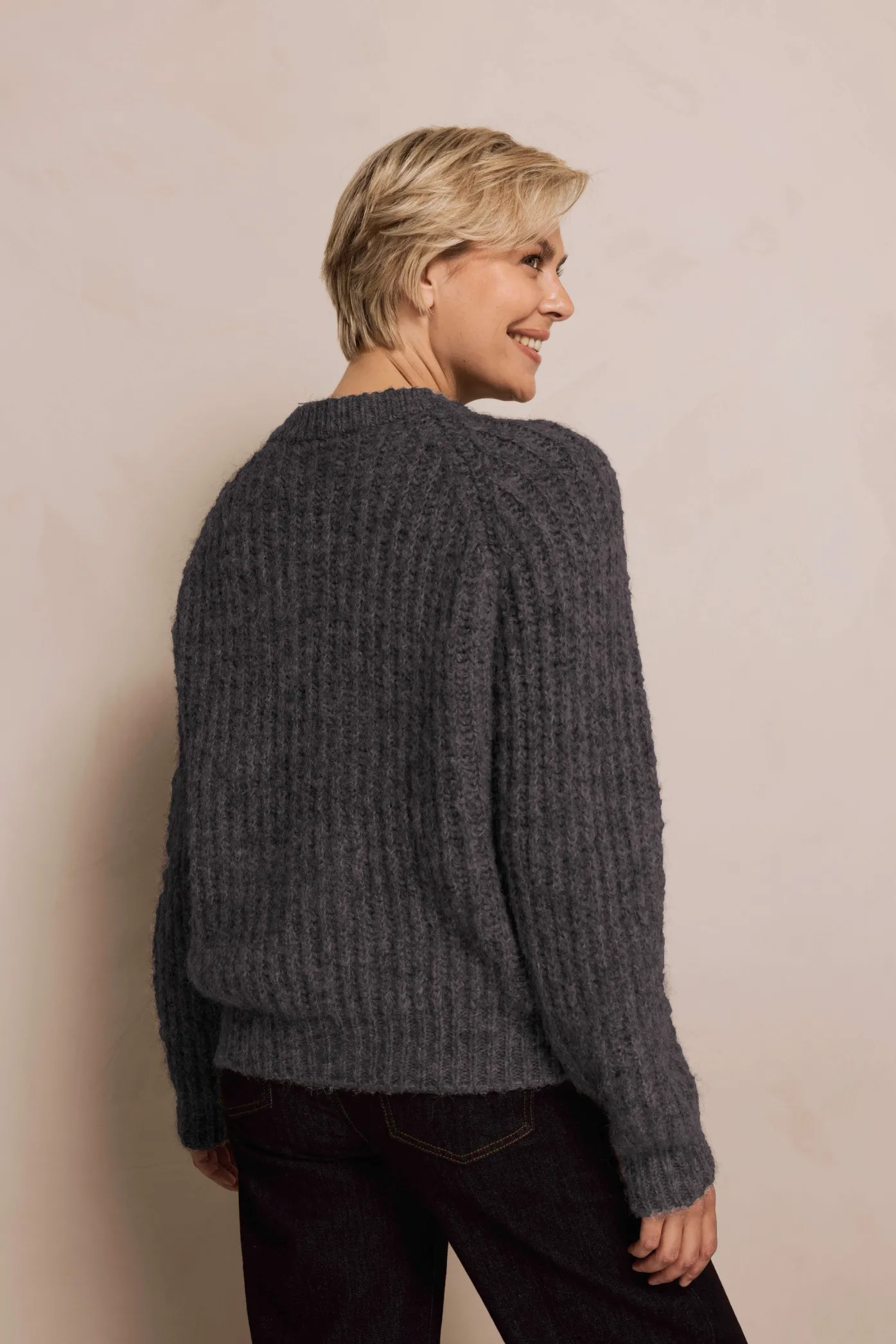 Grobstrick mit vertikaler Rippenoptik