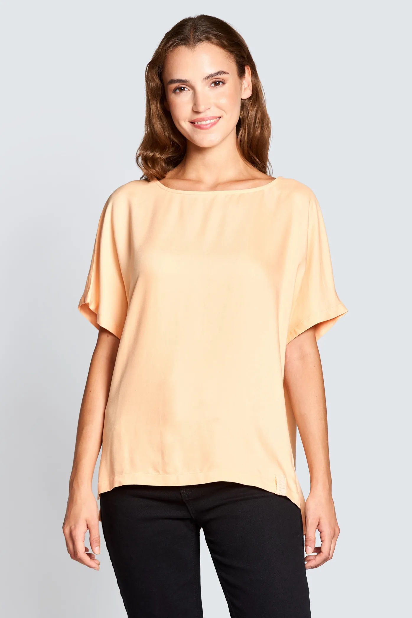 Details: weit geschnittene Ärmel – Regular Fit – vorne kurz, hinten lang geschnitten